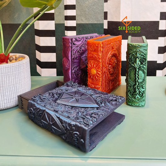 3D Printed Book | Dice + Cards + Mini Storage Box | Wizard Tome